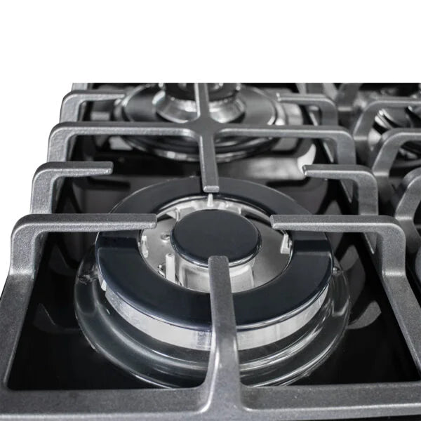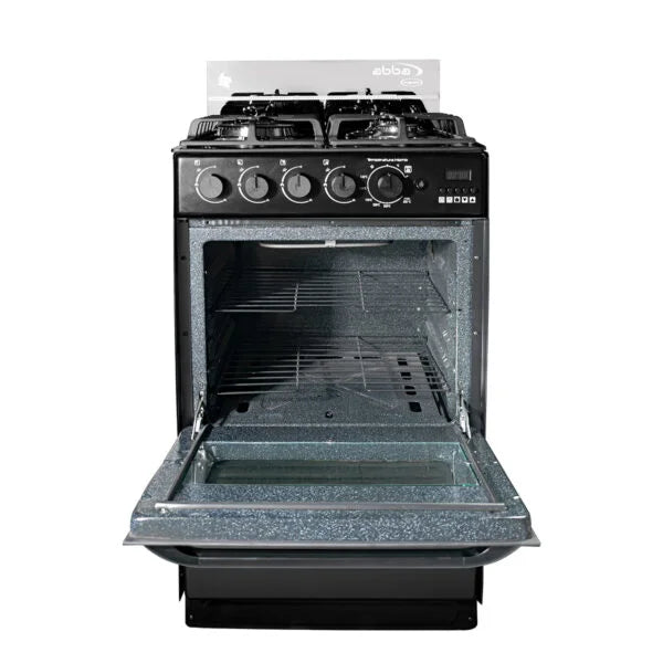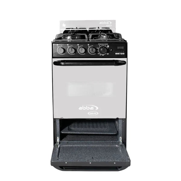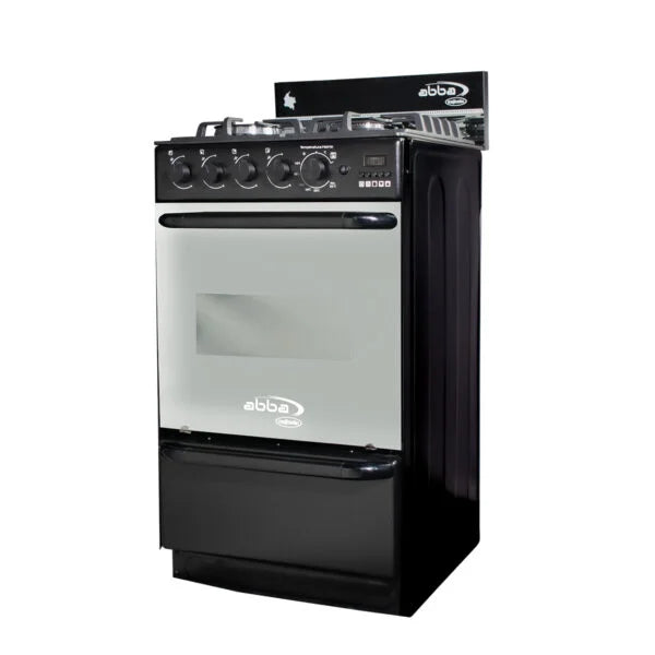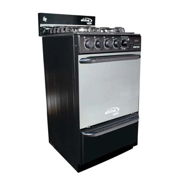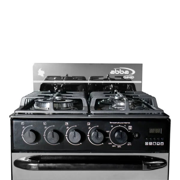 Estufa Master chef Abba 51 centímetros Gas Natural, con TIMER DISPLAY, puertas y mesa en vidrio de seguridad, la puerta del horno en vidrio espejo aporta visibilidad al interior que te permite monitorear tus platillos mientras se cocinan. Dos parrillas superiores dobles en hierro fundido fabricadas con materiales resistentes y fáciles de limpiar con 4 quemadores de alto rendimiento ultra rápidos, para cocinar con rapidez y precisión. Encendido automático (en quemadores y horno), hornos con aislamiento térmico lo cual evita perdidas de calor al interior del horno, generando menor consumo de energía, espacioso y eficiente, permite hornear con resultados profesionales, operado por termostato (con protección termoeléctrica), con luz interior (bombillo de 25W), gratinador eléctrico de 1000W a 120 V/60 Hz con sensor térmico que evita el sobrecalentamiento del producto, Calientaplatos asador. Perillas de estufa con diseño ergonómico.