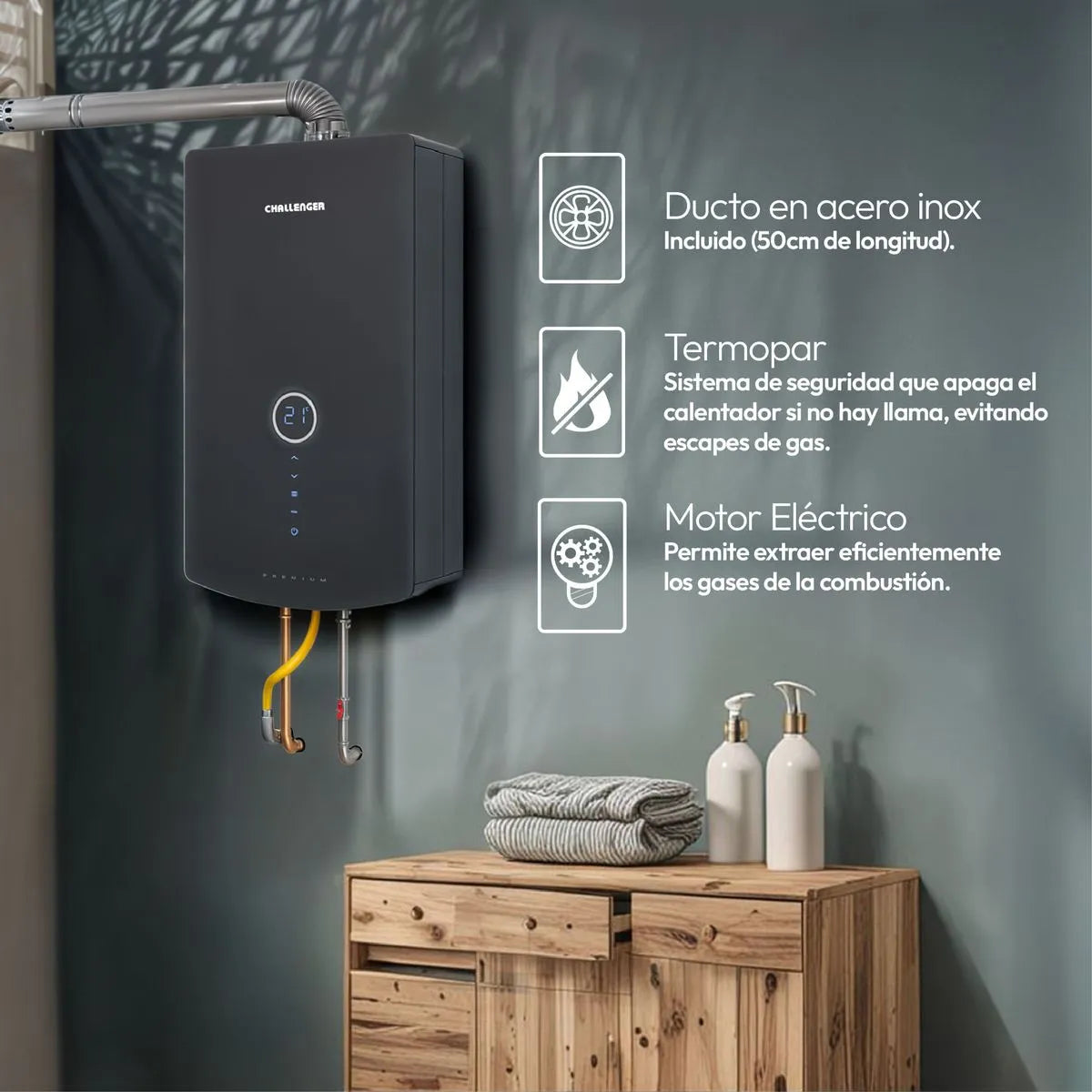 Calentador de Paso Challenger Gas Natural 12 Lts Tiro Forzado - WHD7125-GN
