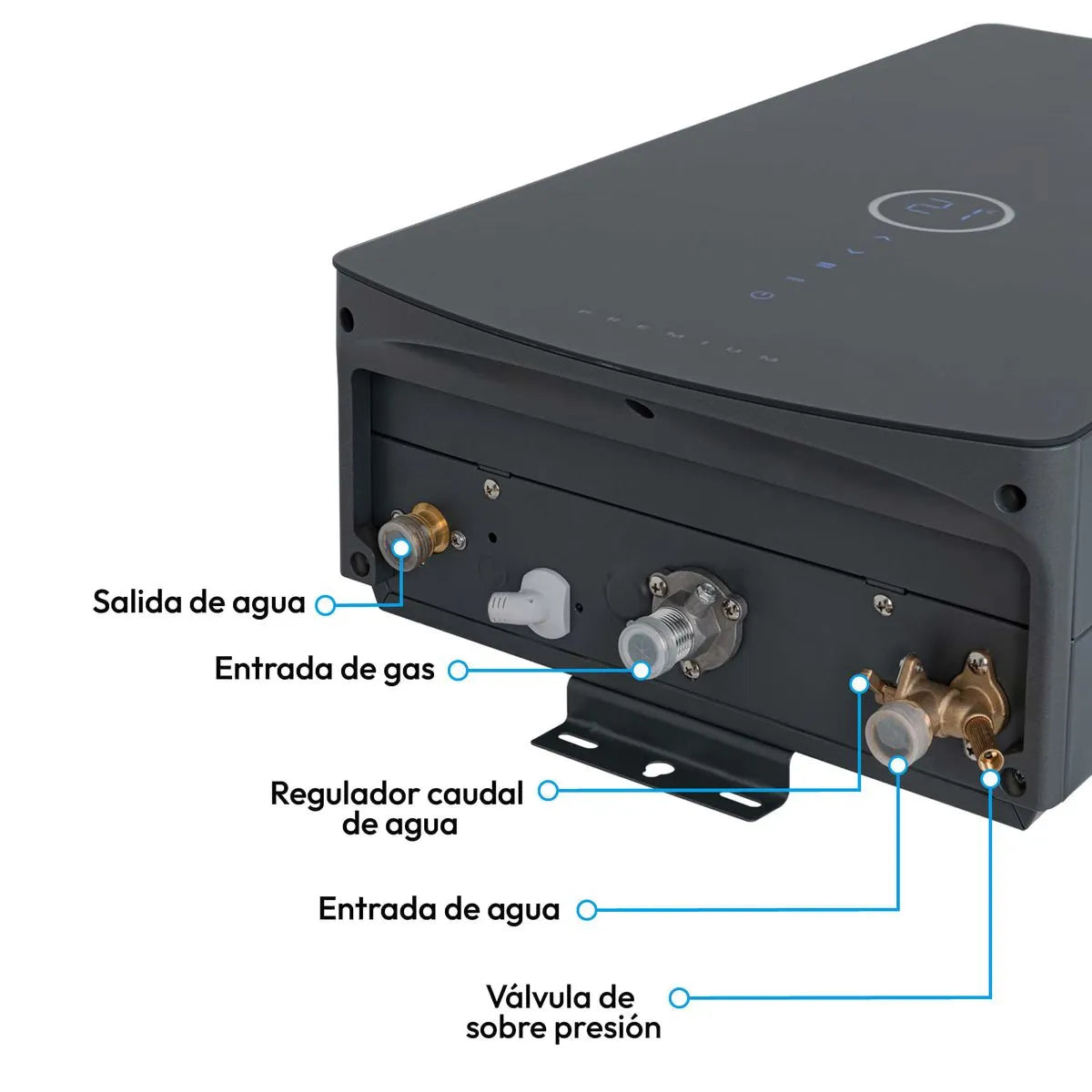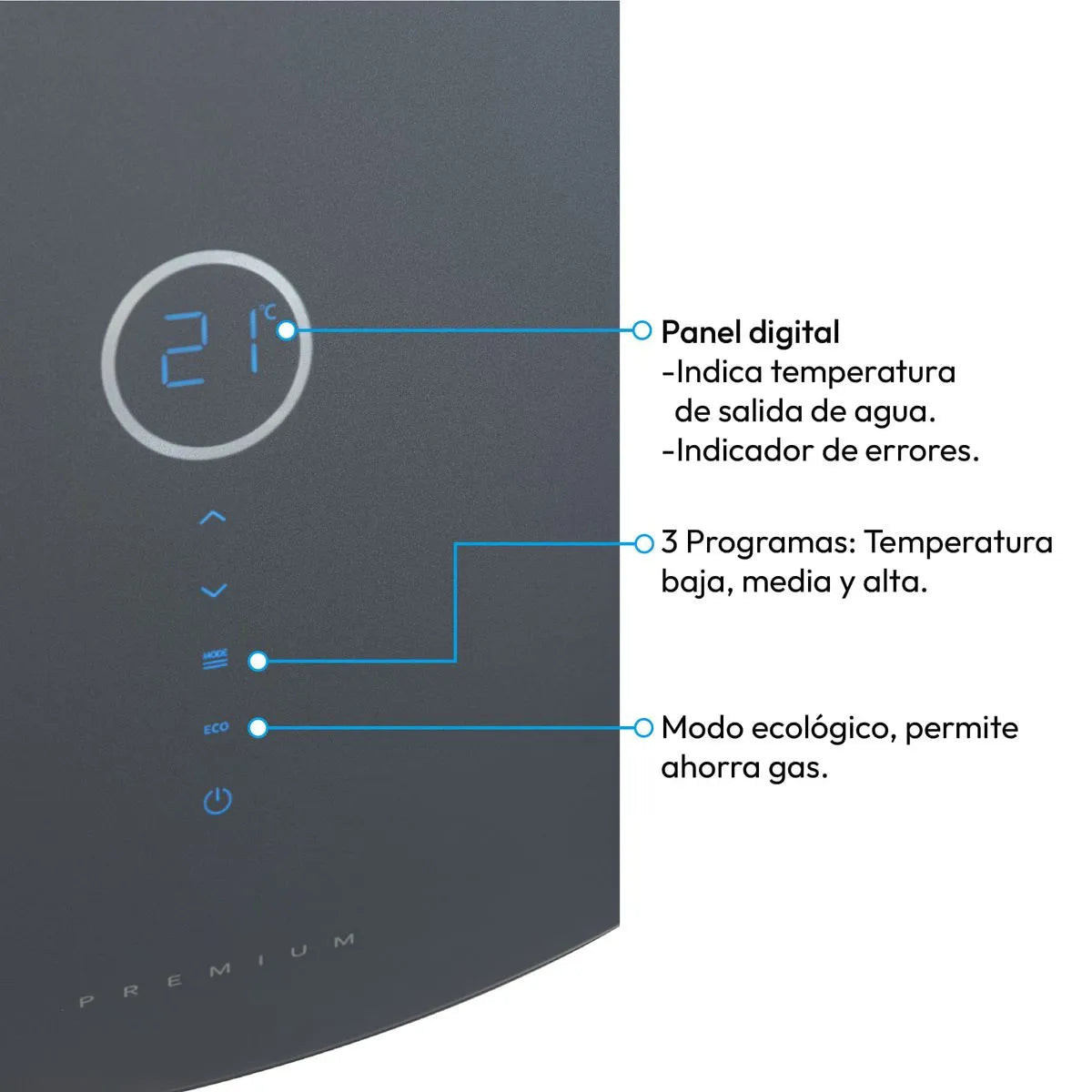 - Calentador Modulante (el consumo de gas esta regulado por el consumo de agua (a mayor paso de agua mayor consumo de gas).