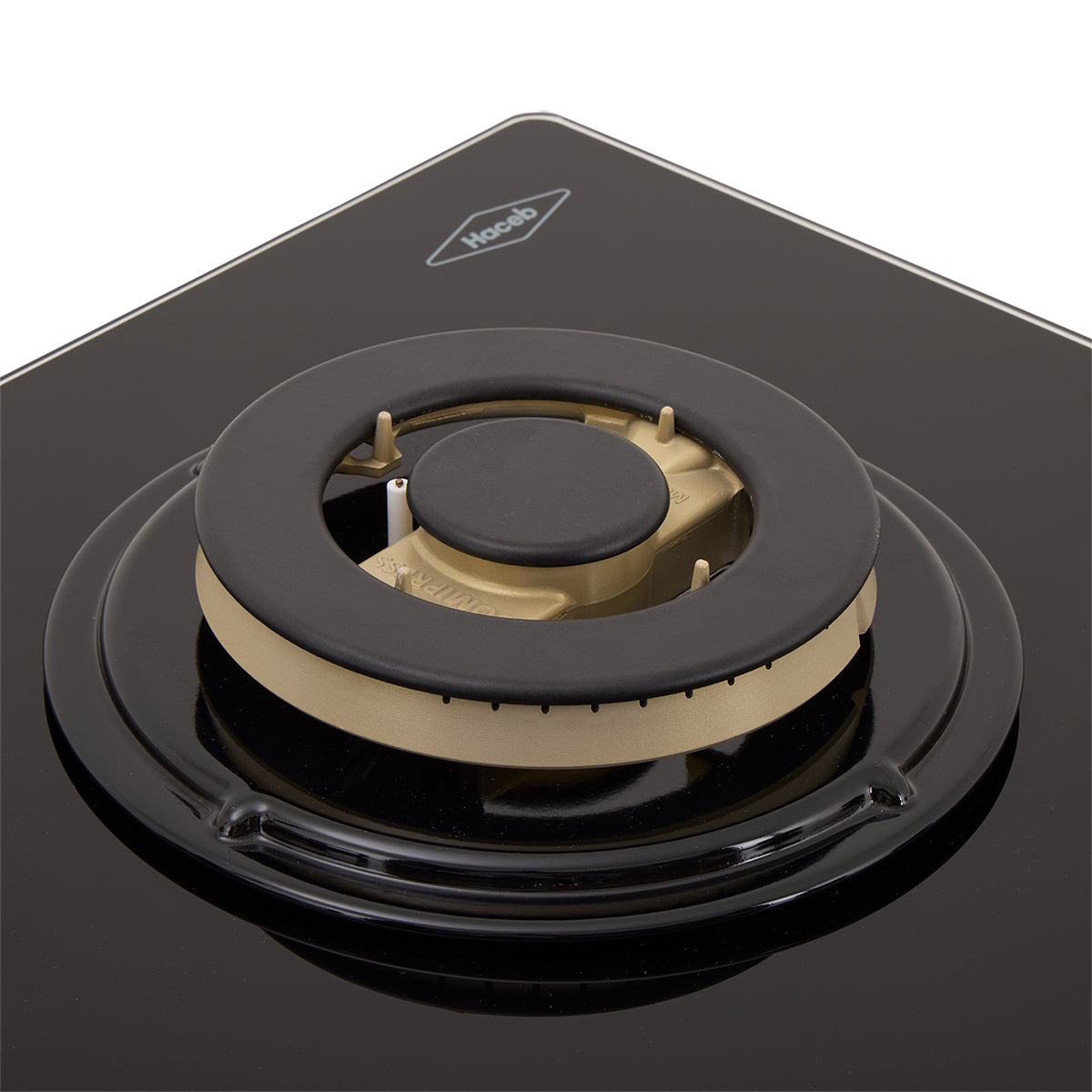 Estufa de Empotrar Cristal Haceb con fogón triple corona color oro mate de 3 puestos - 60x43 cm a Gas Natural Negra - CUB TO ORO 3C 60-43 CRISTAL HF 3Q GN - Logística Haceb