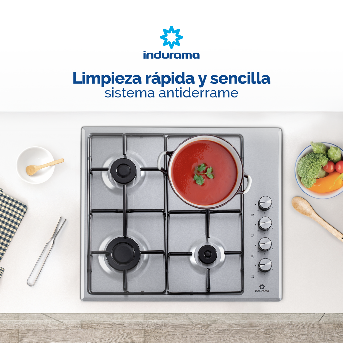 Estufa de Empotrar 60 cm Inox 4 Quemadores Indurama Gas Natural Encendido Automático.EGI-604AIA Inox
