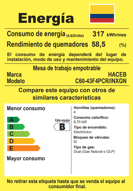 Aviso legal  Instalación y uso deben realizarse según el manual del fabricante, por técnicos autorizados. Haceb no se hace responsable por daños por uso o instalación incorrecta. Las imágenes son de referencia y pueden diferir del producto real.