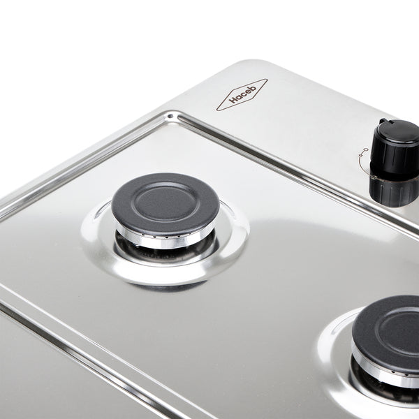 Con tu estufa de empotrar HACEB Tofu Inox 60-43 cm gas natural, tendrás la posibilidad de cocinar tus recetas favoritas y sin preocupaciones a la hora de limpiar gracias a la mesa en acero inoxidable y la zona antiderrames. Fogones de diferentes tamaños que se acomodan a los diferentes diámetros de tus ollas. No lo esperes mas ¡Compra ya!