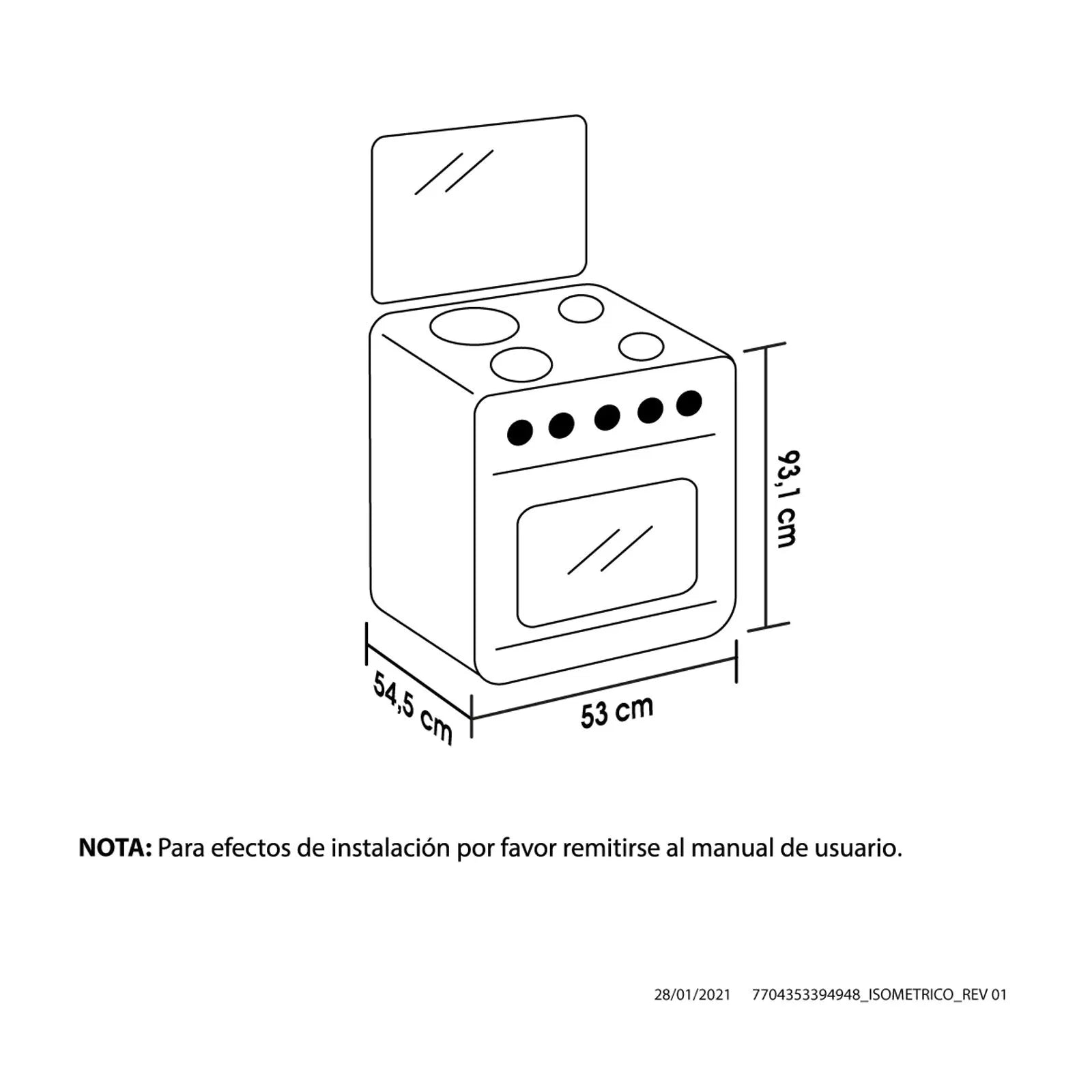 Estufa Romero Haceb de 4 puestos 50 cm a Gas Natural Plata - ESTUFA ROMERO 50-V MIX 3X1 GN PL - Logística Haceb