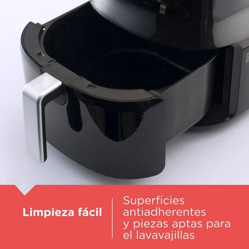 La Freidora de Aire HF4004B de Black+Decker permite cocinar con aire caliente en lugar de aceite, lo que reduce la grasa en los alimentos sin sacrificar el sabor. Su capacidad de 4.5 L permite preparar porciones grandes, ideal para compartir.