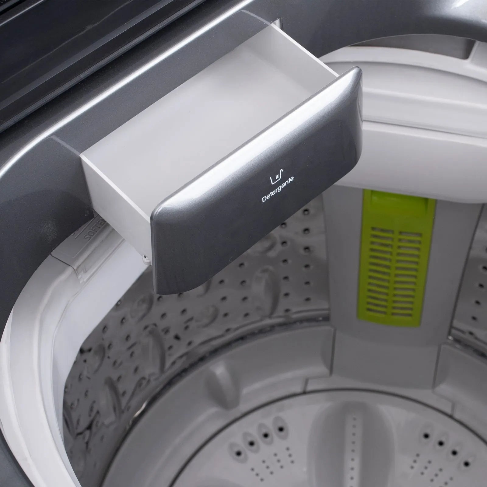 ¡Transforma tus rutinas de lavado con la Lavadora de carga superior digital gris de 8,5 kg. Dedica tu tiempo a lo que realmente importa mientras la lavadora trabaja por ti. Con su tecnología de remojo optimizado y movimientos activantes del detergente, tu ropa quedará impecable en cada ciclo. Podrás personalizar tu lavado, utilizando seis diferentes programas como: Favorito, Rápido, Inteligente, Sábanas, Fuerte y Delicado.