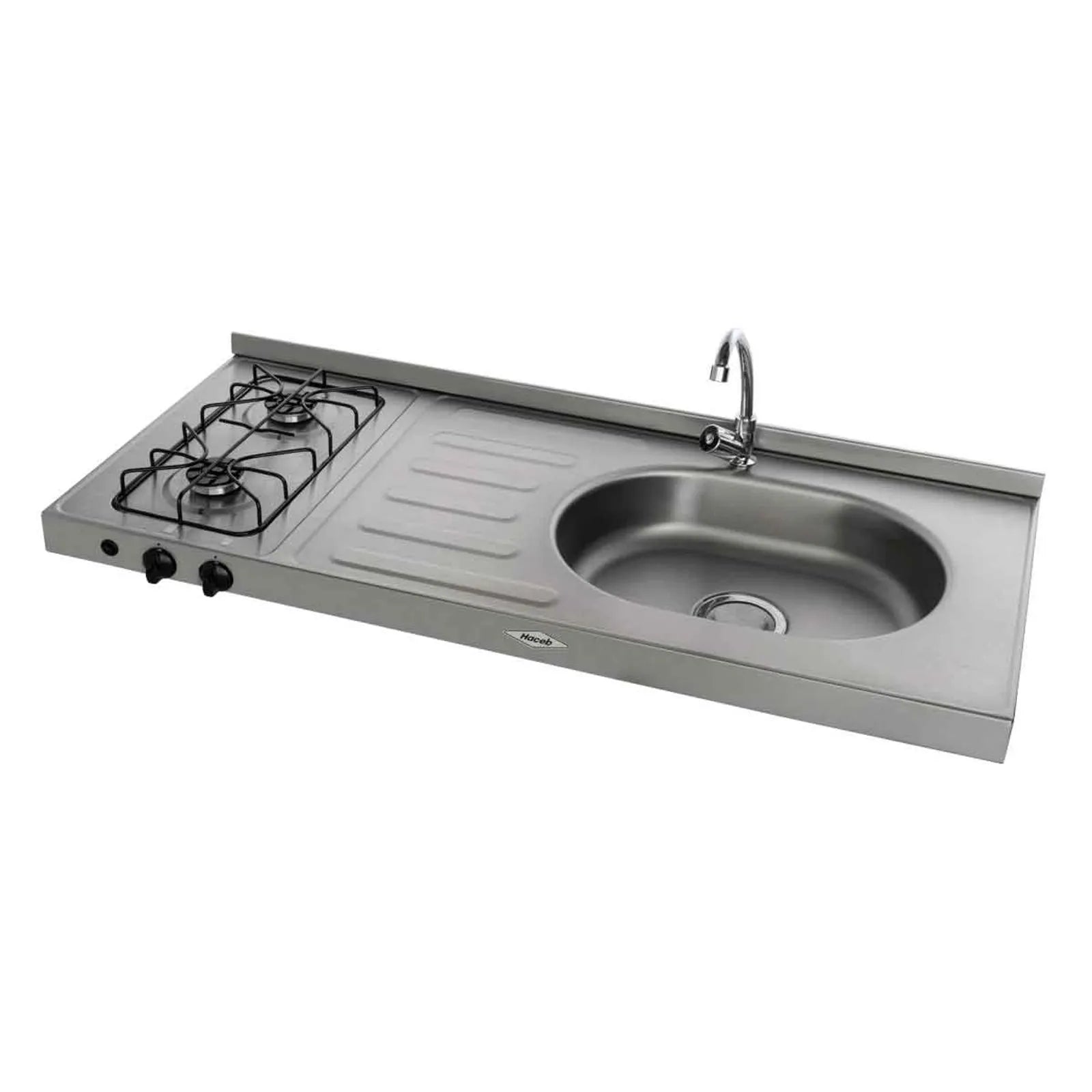 Mesón Ovata Haceb de 1.20 metros pozuelo derecho de 2 puestos a Gas Natural Inox - MESON AR 1.20 GAS-2 PDS EE GN INOX - Logística Haceb