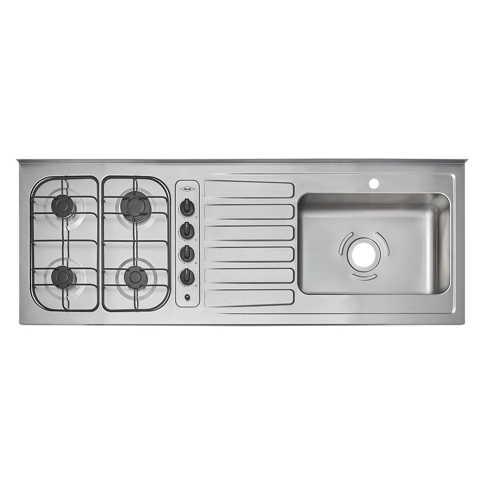 Mesón Haceb de 1.50 metros pozuelo derecho de 4 puestos a gas natural Inox - MESON OVATA 1.50 INOX ML 4PD EE GN 1 OR - Logística Haceb
