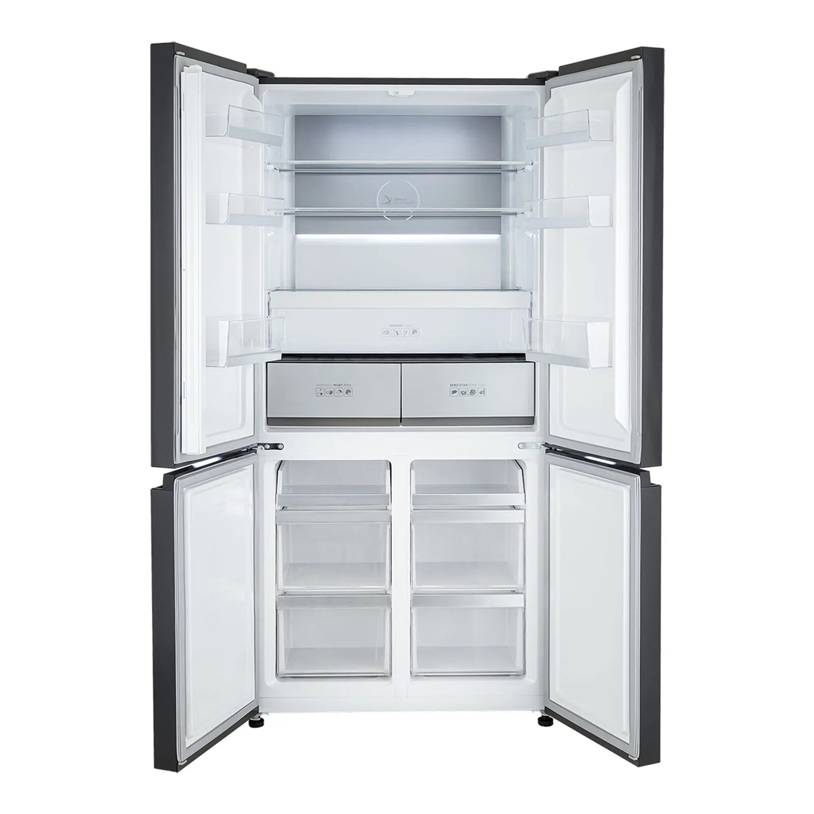 Nevecón tipo Cross Door 586 litros, color negro y panel digital con funciones inteligentes. Cuatro puertas que facilitan su uso y te permiten el ahorro de energía. Compartimiento inferior convertible para refrigerar o congelar según tu necesidad; Tiene dos compartimientos magnéticos e independientes, uno de ellos cero estrellas apto para descongelar o mantener alimentos muy fríos. Excelente distribución interior e iluminación tipo led con aumento gradual.
