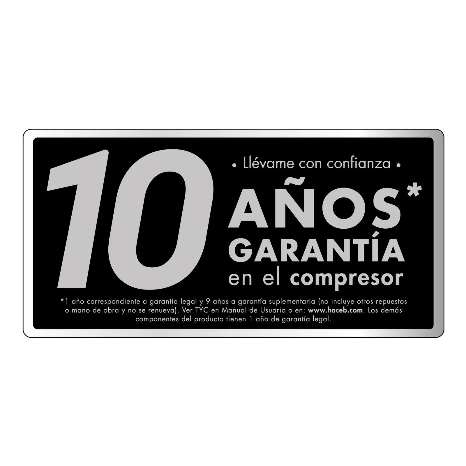 | Garantía del Fabricante meses | *10 años en el compresor y 1 años en los demás componentes, *1 año correspondiente a garantía legal y 9 años a garantía suplementaria. |