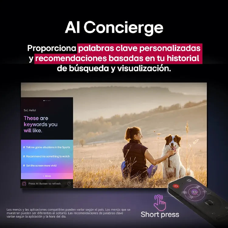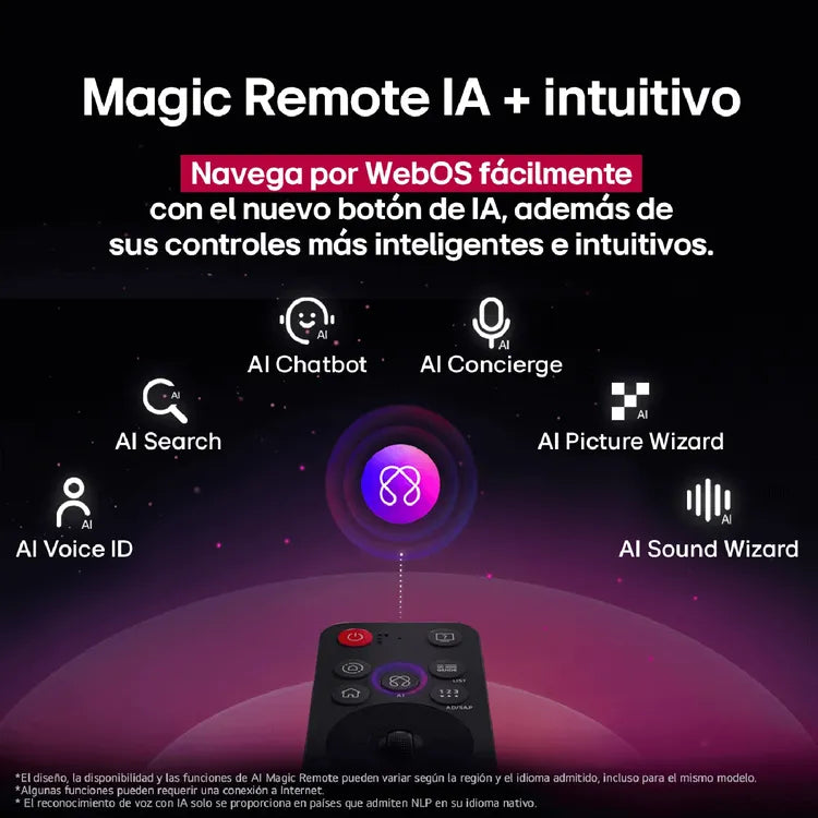 Gracias a su frecuencia de actualización de 165 Hz, es perfecto para gamers que buscan fluidez y precisión en cada movimiento. Además, incluye el intuitivo Magic Remote AI, con control por voz y puntero para una navegación más cómoda y rápida.